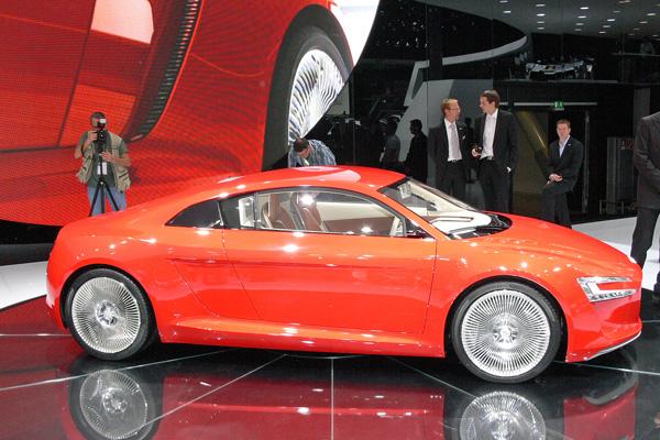 Audi E-Tron. Nemţii au făcut pe baza modelului R8 un model electric, capabil să producă peste 300 CP. Bravo lor.