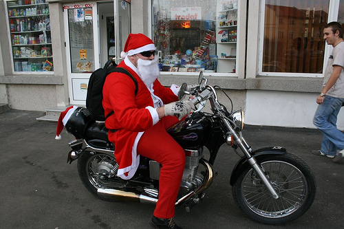Cine a zis că moş Crăciun nu are voie să se distreze? Ghici ce, chiar are! Iată că el face acest lucru chiar pe străzile patriei, mai exact în Oradea. Acest lucru se întâmpla în 2007, dar noi dorim să-i arătăm Moşului că nu trebuie să uite vechile obiceiuri ale sale, când era cu vreo 2 ani mai tânăr. Pe site-ul pe care era postată informaţia, http://www.oradeanul.com, moşul a fost întrebat: