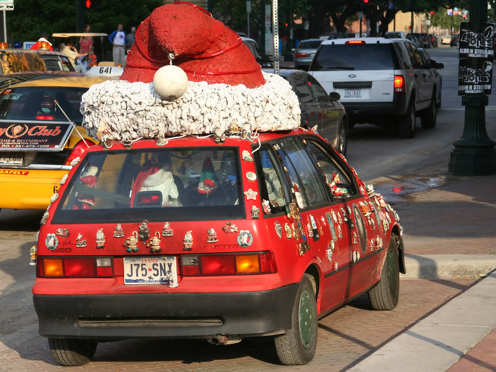 Iată o maşină care îl aşteaptă cuminte pe Moş Crăciun: un tip pe nume Bryan Taylor şi-a transformat în 2005 maşina în… sanie pentru moşul. Probabil că locuitorii din Houston Texas au fost la fel de impresionaţi ca şi noi la vederea acestei creaţii originale. Ce să mai, aşteptăm provincia! În Câmpulung este un taxi roşu, marca Daewoo Cielo, ,,transformat” în sania moşului, condus de un spiriduş de al său, care împarte bomboane la copiii care călătoresc cu el şi… la poliţiştii din trafic. Mai mult chiar, din maşină duduie colinde, colinde… foarte frumos, păcat că momentan, nu vă putem oferi şi nişte fotografii. Dar vom încerca să-l surprindem în trafic :-)!
