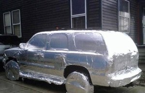 Cei ce au muncit la aceasta gluma au avut nevoie de 2 lucruri: In primul rand de o folie foarte mare de aluminiu si in al 2-lea rand de o rabdare si mai mare.