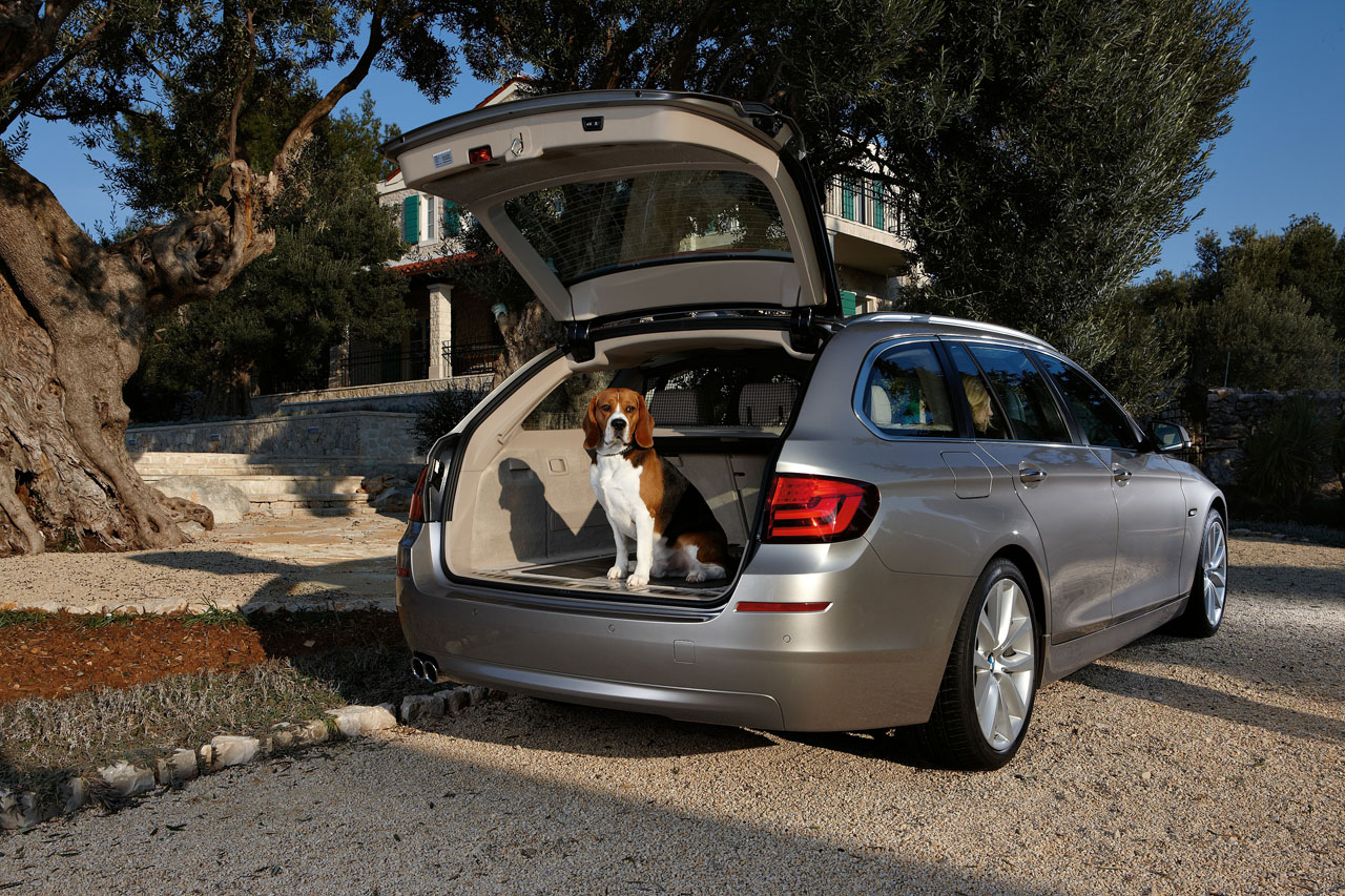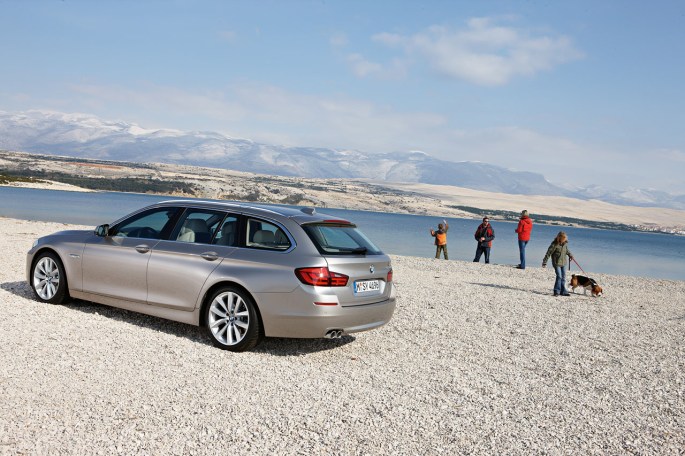 M-am învârtit în jurul ei destul de emoţionat pentru că eram fermecat de frumuseţea ei. I-am atins timid mânerul clasic al portierei şi m-am afundat în braţele… pardon, în scaunul dotat cu piele fină, deschisa la culoare. Nu este vorba de calitatea materialelor folosite, este vorba de eleganţa şi îmbinarea perfectă a acestora. Aceste sincronizări realizate cu măiestrie te absorb şi te fac să dai răspunsuri destul de banale la întrebări de genul ,,cum ţi se pare?” Cel puţin, mie asta mi s-a întâmplat. Ochii vedeau, iar simţurile mele o luau razna. Mă întrebam în sinea mea cum e posibil ca dintr-o generaţie anterioară atât de criticată în privinţa designului (asta ca să fiu subtil şi să nu spun oribilă) să iasă o bijuterie care poate fi folosită cu mândrie de o familie întreagă. Unii ar spune că de vină a fost Bangle, iar printre ei poate mă număr şi eu. Dar nu mai contează, pentru că e mult mai important cum arată actualitatea: noua serie 5 Touring e genul de maşină care poate să-ţi crească doza de prestanţă dacă eşti tătic şi îl conduci. Desigur, asta este valabil şi în cazul mămicilor care se urcă la volanul freneziei.