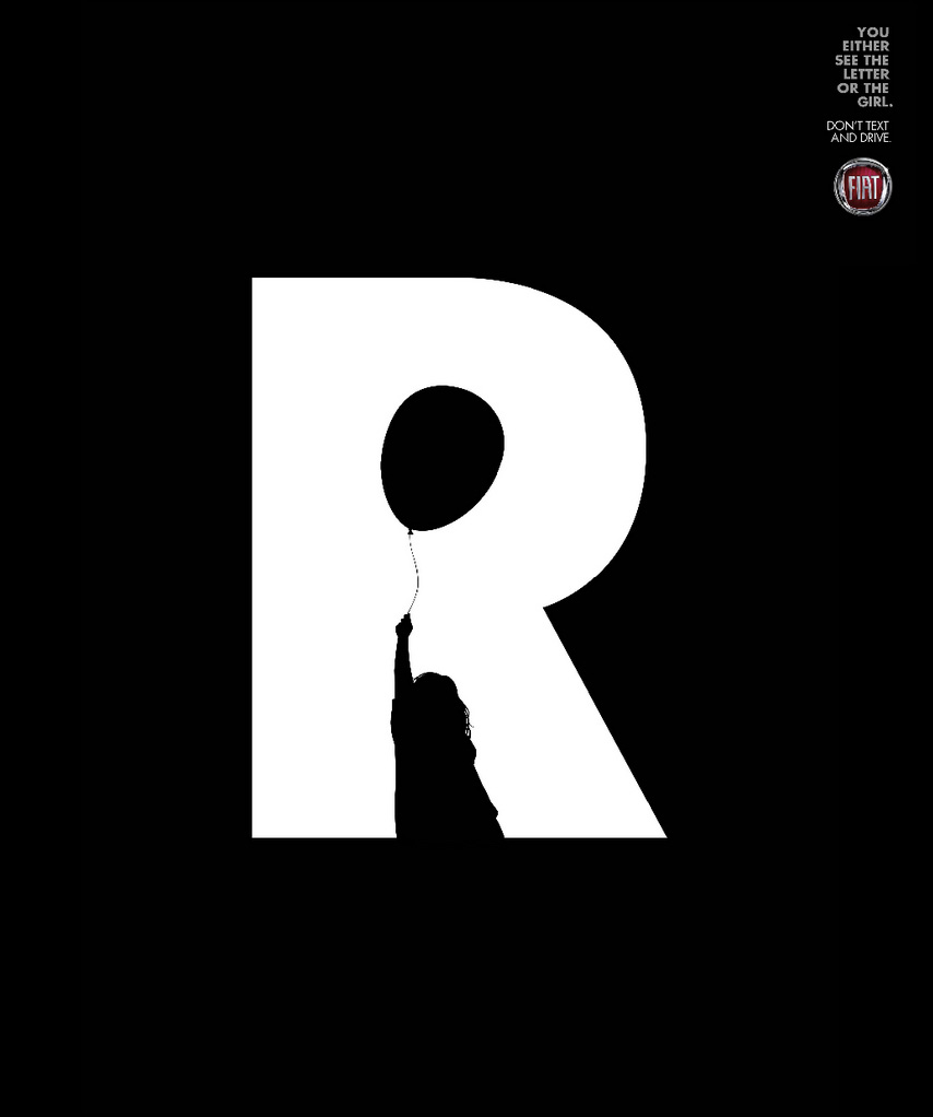 Un print realizat pentru promovarea brandului Fiat încearcă să explice printr-o imagine cum vei percepe lucrurile: ori vei vedea copilul din mijlocul literei, ori vei vedea litera.