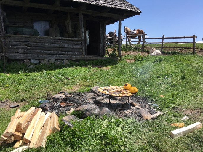La Stâna Strâmtu din Lerești trebuie să ajungi călare și la fel ca ateul care devine 100% creștin când trece prin turbulențe mai zdravene, cam la fel va deveni ăl’ care nu prea se omoară cu mâncarea când va asista la prepararea bucatelor tradiționale, lihnit de foame și de sete, metamorfozându-se apoi în Flămânzilă din povestea lui Harap-Alb. Eu am discutat despre ea cu Relu cât așteptam să ne așezăm la masă. Am făcut și un story pe insta ca ”băjetzii”.