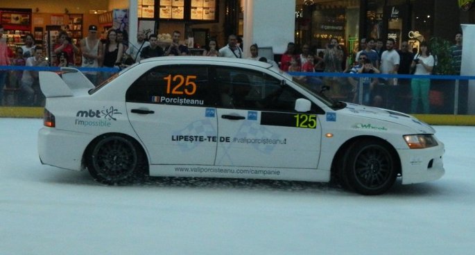 Distracţie pe cinste şi un spectacol pe măsură: asta este pe scurt ceea ce a oferit ieri seară campionul de raliuri piteştean, Vali Porcişteanu, pe patinoarul din Afi Palace Cotroceni, cu prilejul lansării campaniei „Lipeşte-te de #valiporcisteanu!” .De la schemele îndrăzneţe efectuate de o echipă de tineri patinatori, până la drifturi cu două carturi şi Mitsubishi Lancer Evo pilotat de Vali, nu a fost loc pentru plictiseală.