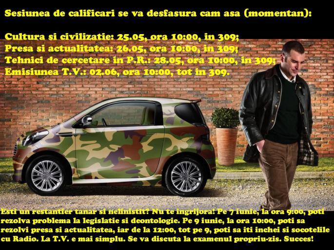 A, dacă tot vorbim de modă, să ştii că săptămâna viitoare începe sesiunea, dacă eşti în anul III, pe la Universitatea din Piteşti şi… ghici unde! Chiar la specializarea jurnalism! Aşa că iată câteva informaţii care s-ar putea să te intereseze. O să te anunţ dacă intervin modificări, nu dispera…