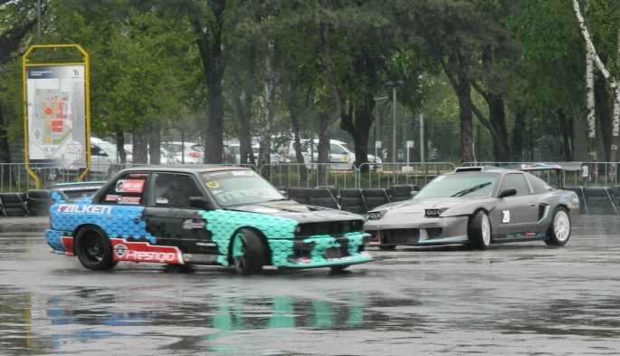 Dar bine au făcut, pentru că Dumnezeule, cât de spectaculoase sunt drifturile pe asfalt umed… cât de bine arată… nu mai lungim vorba. Vrei mai mult, mergi la SAB. Până atunci, noi îţi propunem o galerie cu fotografii multe şi cuvinte puţine, dar cu zvâc, pentru a-ţi contura o altă perspectivă asupra acestui eveniment „ghiocel” pentru fanaticii automobilişti. Începem cu un popas în ţarcul de drift. Acum, roţile la vedere, vă rog!