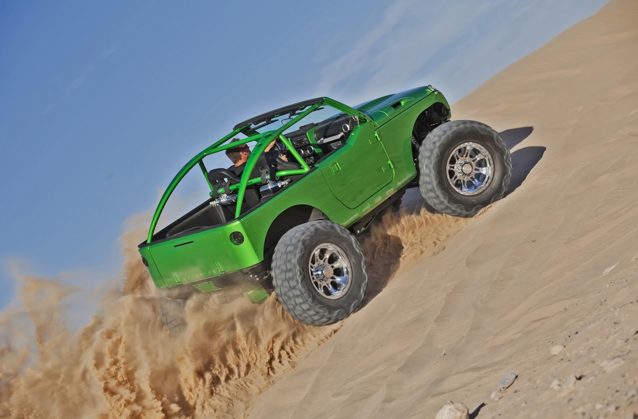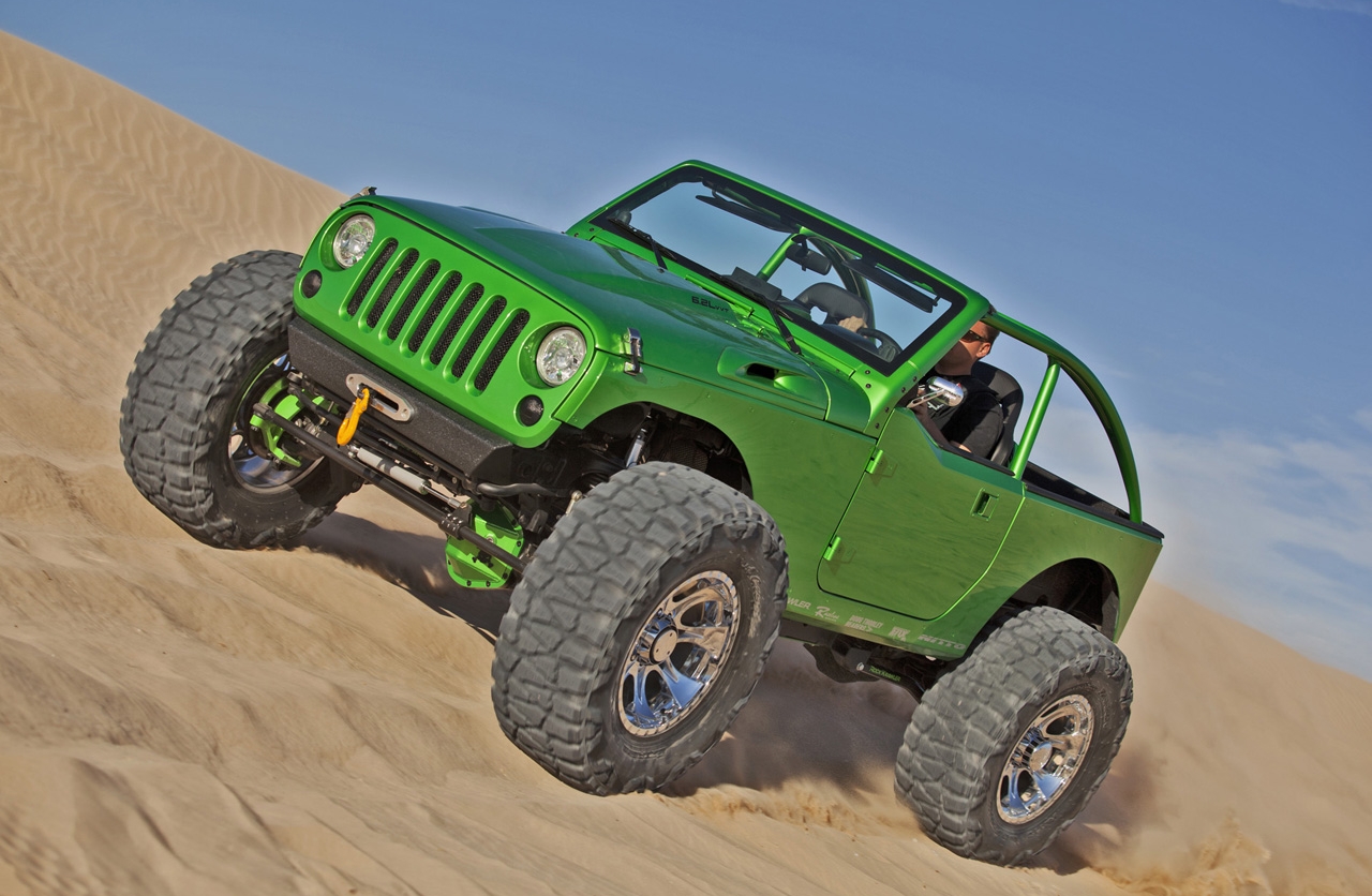 Ce pufoşenie verde!!!! Şi e atât de drăgălaşă! E pe naiba. De fapt, e o maşină de teren cu care ai curaj să te duci să-ţi recuperezi lopăţelele pe care le-ai uitat în groapa cu nisip atunci când te jucai. Sau… poţi să te duci la proful de sport din liceu, să-l iei în dreapta şi să îl duci în primul deşert care îţi apare în drum. Ajunşi acolo, poţi să-i arăţi ce grad ridicat de experienţă ai căpătat la săritura în lungime. Ai grijă totuşi la aterizare. Jeep-ul ăsta nu e o petardă ca Buggy, cu care poţi să-i stropeşti pe oameni la mare. Nu, e un utilaj de distracţie pentru bărbaţii adevăraţi, cum eşti şi tu. Ia de aici: