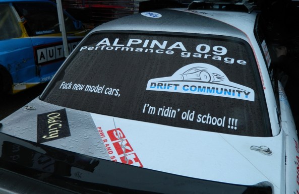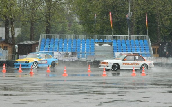 Dar bine au făcut, pentru că Dumnezeule, cât de spectaculoase sunt drifturile pe asfalt umed… cât de bine arată… nu mai lungim vorba. Vrei mai mult, mergi la SAB. Până atunci, noi îţi propunem o galerie cu fotografii multe şi cuvinte puţine, dar cu zvâc, pentru a-ţi contura o altă perspectivă asupra acestui eveniment „ghiocel” pentru fanaticii automobilişti. Începem cu un popas în ţarcul de drift. Acum, roţile la vedere, vă rog!